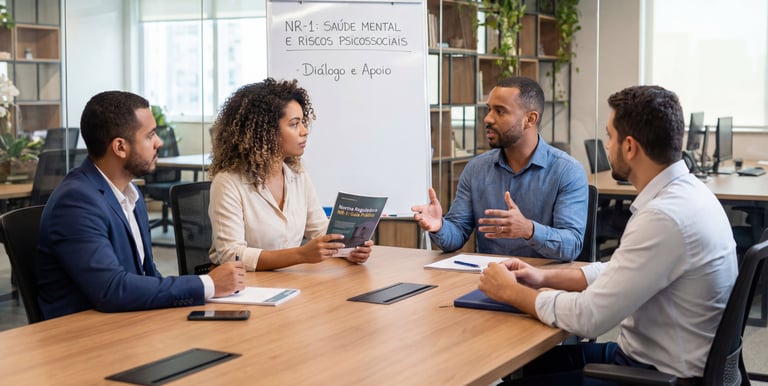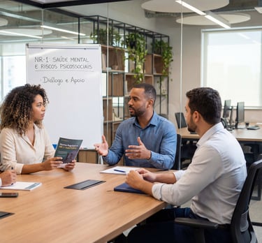Consultoria especializada em NR-1 e riscos psicossociais no ambiente de trabalho, com foco na saúde mental dos colaboradores.